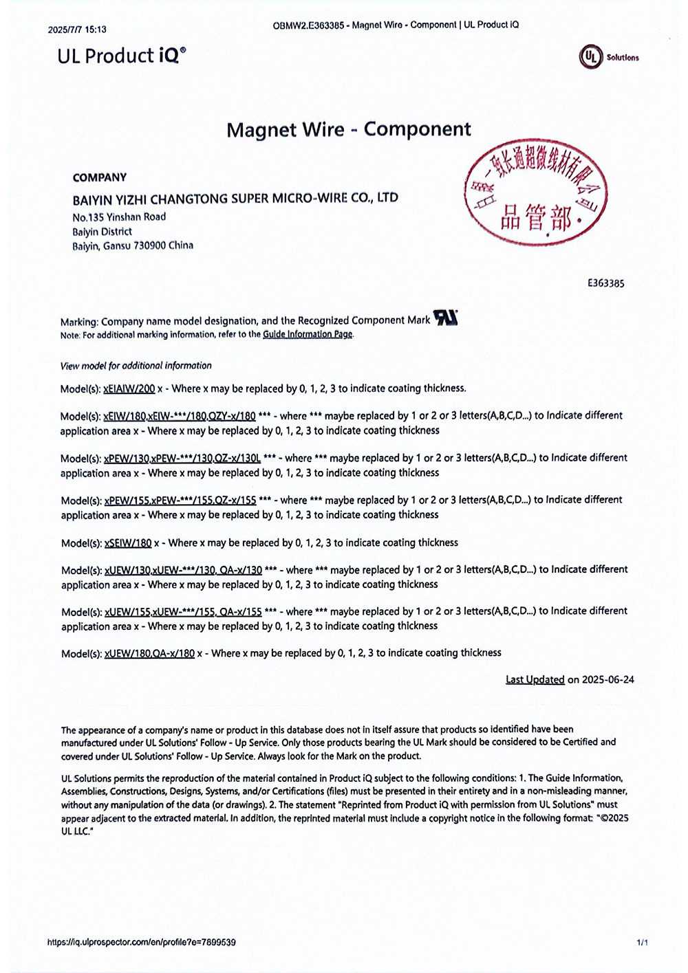 新エネルギー、高品質の製造設備、航空宇宙分野などの中高レベル新興業界の市場発展の需要に順応し、満足するために、当社は分析テストセンターを設立し、高品質細エナメル銅線の分析項目を開発し、重要な原材料と副材料を分析し選択し、安定かつ管理されたクリーンな生産環境とサプライチェーン共同成長管理モデルを確立し、顧客の要求に満足する工程データを提供し、製品品質の安定性、信頼性と一致性を保証し、全面的且つ専門的なエナメル銅線の特殊要求分析テスト報告を提供し、更に顧客の高品質管理の全自動化巻線作業要求に満たした。